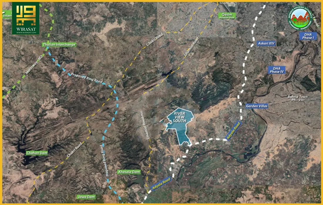 Proximity to the future Rawalpindi Ring Road, with the nearest interchange approximately 5km away; this is one of the best location advantages of DHA River View South. When the Ring Road, GT Road, Motorway M-2 and other major routes are opened, their connectivity will significantly improve. It is now accessible on Adyala Road, either through Gorakh Pur or Saddar Rawalpindi, and approximately a 25km drive on the Capital Smart City interchange. Currently, the accessible points are not clear, but with the planned infrastructure developments, River View South could become a well-located and well-connected project in the near future.