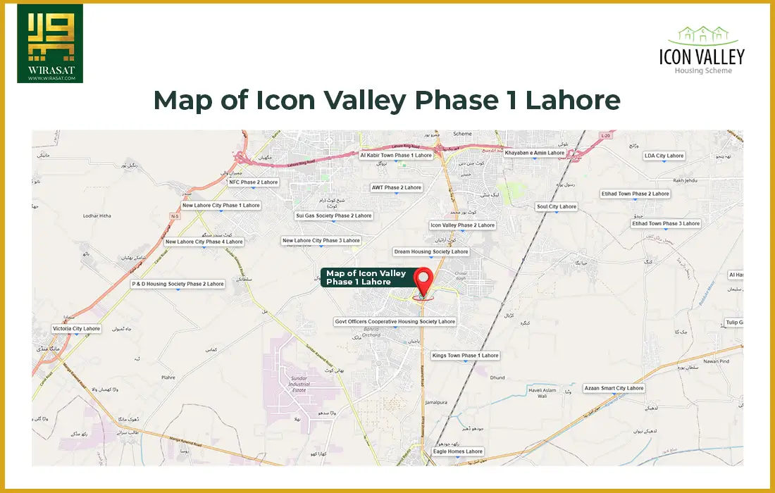 The Icon Valley Phase 1 Lahore location map is as follows: